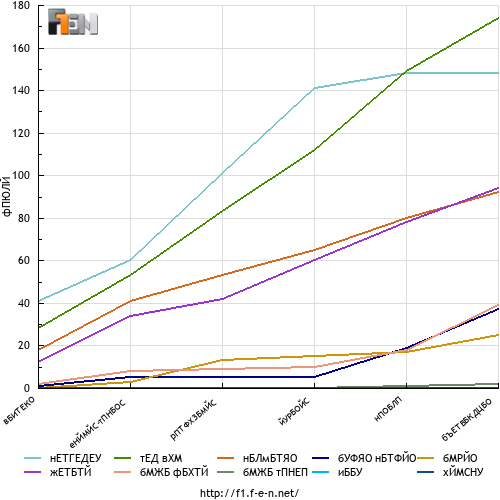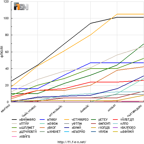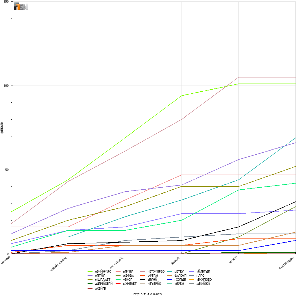 Отпаднали 17 63 Д. РЪСЕЛ 4 18 33 М. ВЕРСТАПЕН 1 19 18 Л. СТРОЛ 0 20 31 Е. ОКОН 1