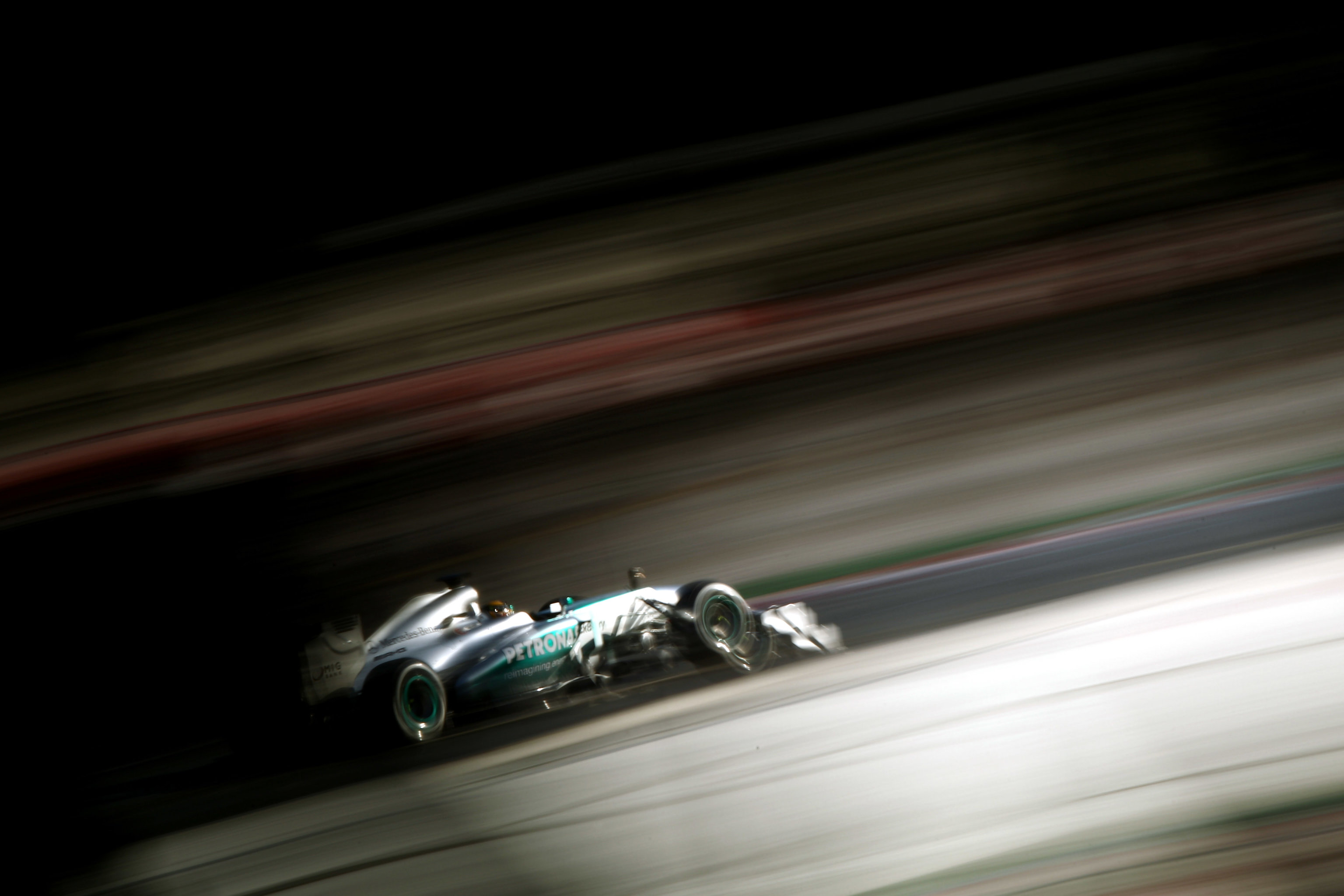 Mercedes on P Zero white medium compound - on track - blurred view