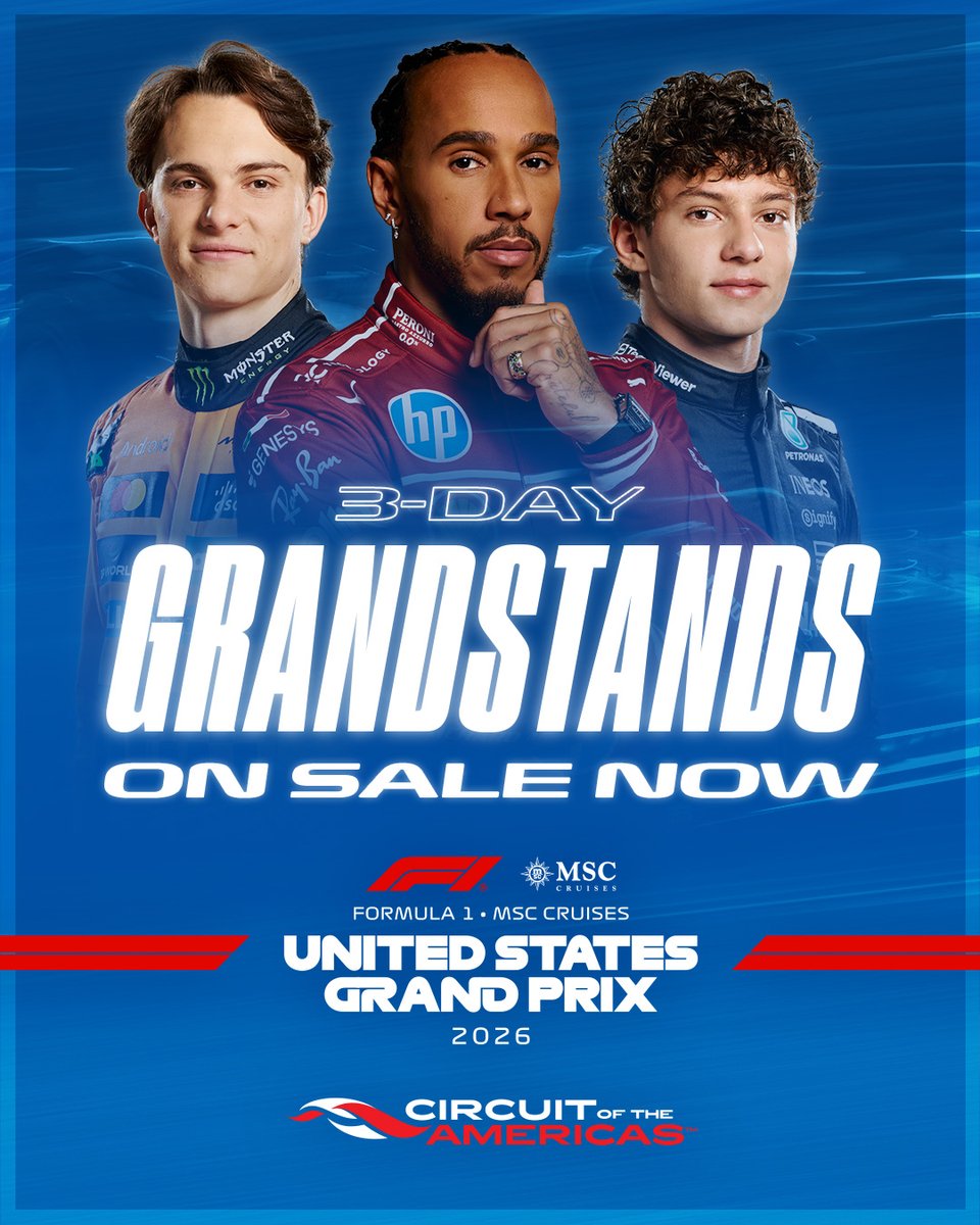 ????BREAKING NEWS????Grandstand Tickets for the 2026 Formula 1 MSC Cruises United States Grand Prix are ON SALE NOW. Formula 1 returns to COTA October 23–25, don’t miss it ?? https://t.co/rXeJQ03L3khttps://t.co/DFddxU0p92