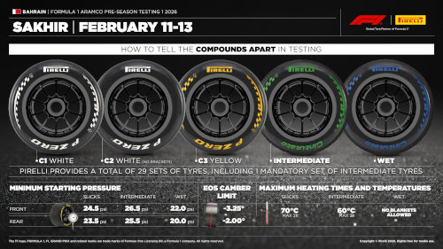 Тестовете преди началото на сезон 2026 ще бъдат в две групи по три дни и ще се проведат в Бахрейн на пистата Сакхир.